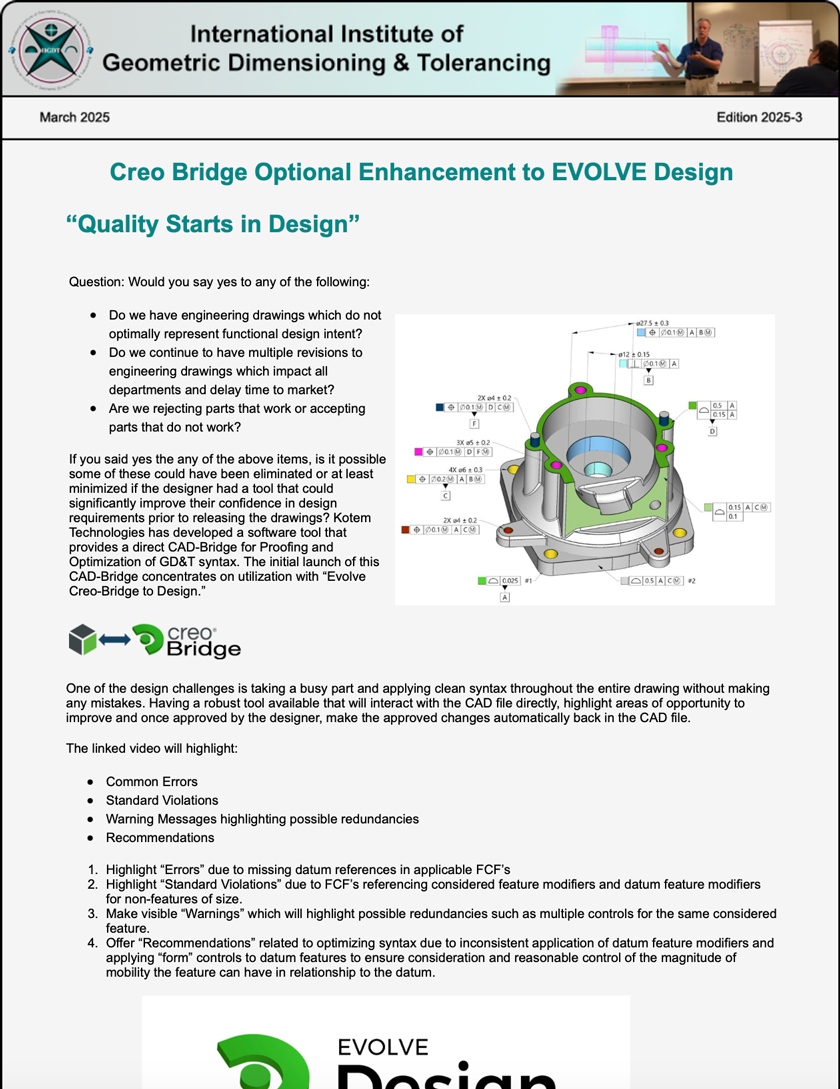 IIGDT and Productivity Quality Inc. (PQI) have teamed up to produce a new seminar focused on the EVOLVE Suite of productivity tools. The EVOLVE software suite optimizes design, production and inspection processes enabling manufacturers to shorten product design & development time, improve quality, and reduce costs through improved efficiency.